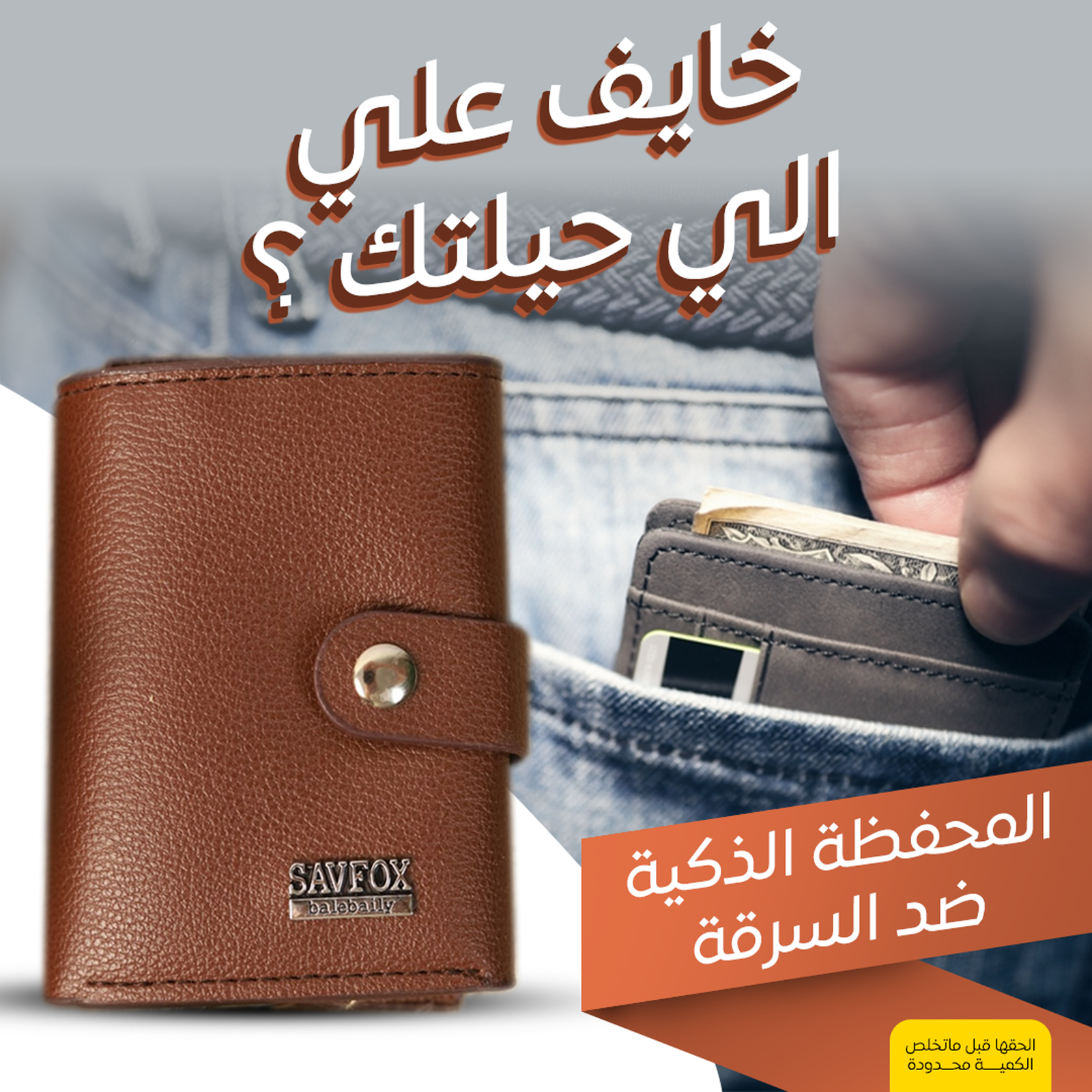 – “خليك مطمن وشيك مع المحفظة الذكية ضد السرقة، حلك المثالي لحماية بطاقاتك وتكمله شياكتك و تمييزك!